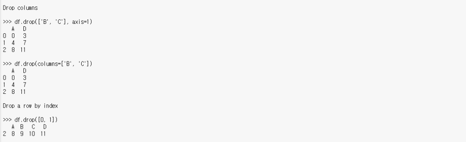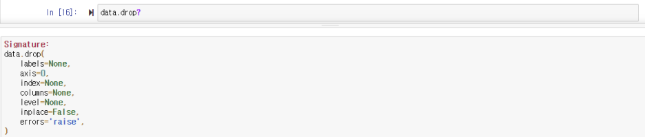 drop을 이용해주면 필요 없는 내용들을 제거해줄 수 있다. 행, 열 둘 다 제거가 가능하다. 하나 팁이 있다면 어떤 함수의 활용법이 헷갈릴 때는 함수 뒤에 ?를 붙인 후 실행시키면 기본값과 활용 예시를 볼 수가 있다. 예시에 컬럼을 삭제하는 방법도 나와있다.